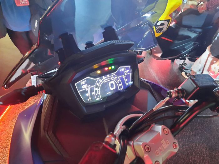 Lalu pada panel instrumennya juga sudah full digital model negative display dengan fitur konektivitas smartphone bernama Aprilia MIA.