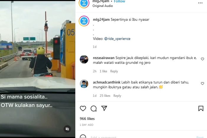 Video tersebut diunggah oleh akun instagram @mlg24jam, terlihat seorang emak-emak yang mengendarai motor kebingungan ketika berada tepat didepan pintu tol Malang Pandaan.