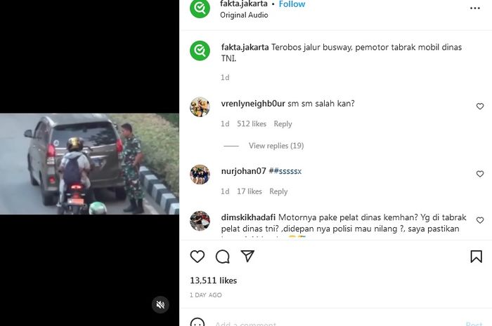 Video tersebut diunggah oleh akun Instagram @faktajakarta.
