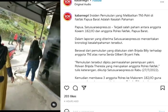 Dari keterangan dalam unggahan kronologis kejadian berawal dari pemukulan yang dilakukan oleh Bripda Billy terhadap anggota TNI Serda Gilbert Bryant.