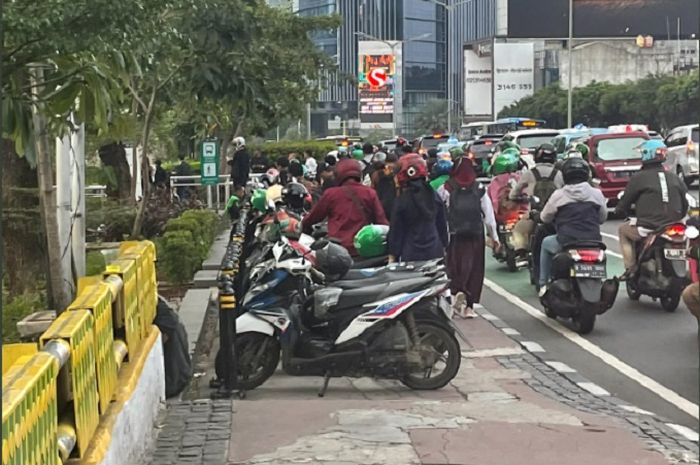 Gridmotor.id - Para karyawan yang bekerja di Dukuh Atas mengeluh banyaknya motor yang parkir di bahu jalan hingga trotoar.