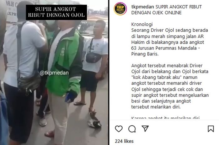 Seorang sopir angkot di Medan, terlibat keributan dengan driver ojek online (ojol) viral di media sosial Instagram.