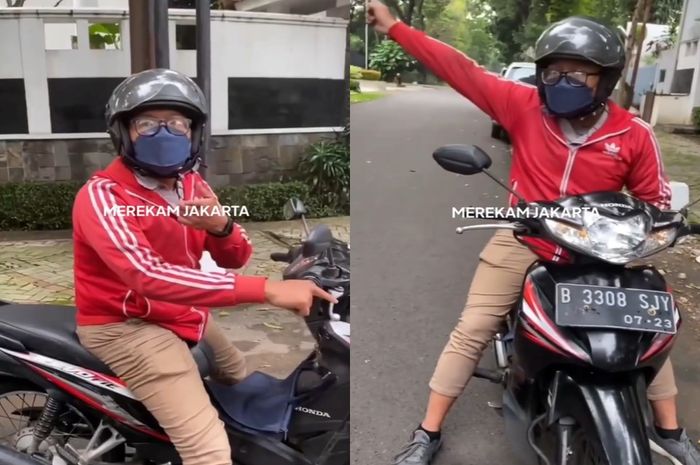Pemotor tersebut merupakan seorang pria berjaket merah dan menggunakan motor Honda Revo.