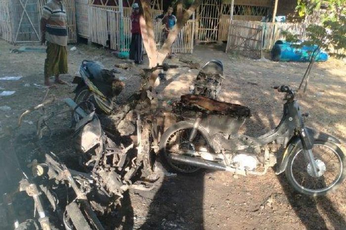 Maskur melanjutkan, kejadian itu disadari warga setelah mendengar letupan dari arah tempat lima sepeda motor itu terparkir.