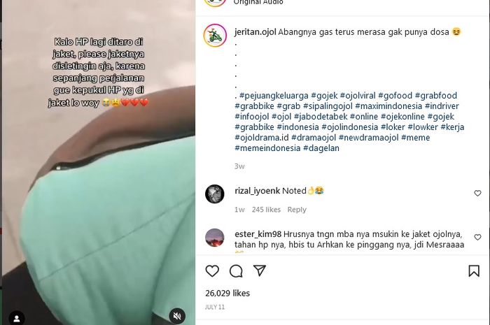 Ditambah lagi didalam kantong jaket ojol itu ada ponsel pasti si penumpang serasa ditimpuk oleh hp berulang kali.