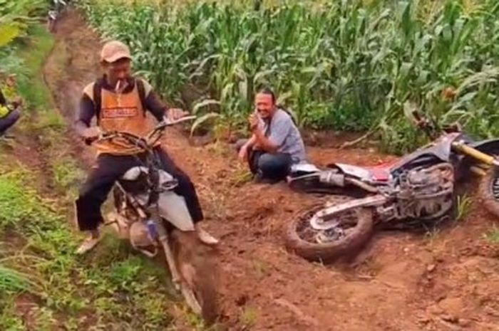 Bahkan ada satu motor CRF150L aja sampai terkapar.