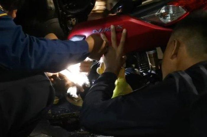 Seperti yang dialami pemilik motor Yamaha NMAX ini kaget karena ada kucing yang masuk ke dalam motornya.