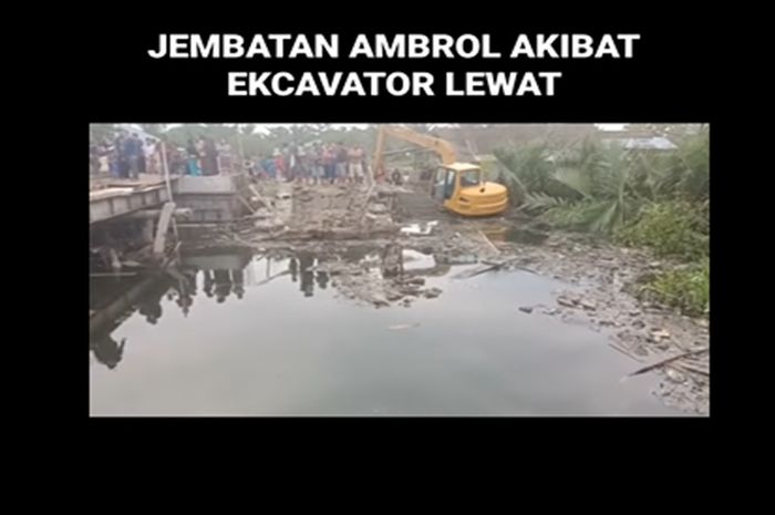 Gridmotor.id - Jembatan yang dibangun dari dana warga ambruk gara-gara escavator milik pemda nekat melintas.