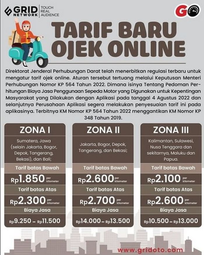 Gridmotor.id - Kemenhub resmi menaikan tarif dasar ojol, ini dia rinciannya per wilayah untuk bulan Agustus 2022.