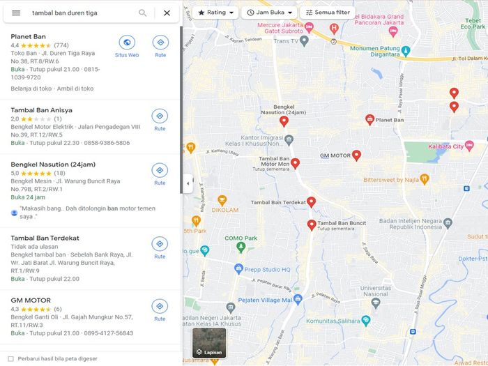 Bikers bisa buka aplikasi Google Maps yang bisa mencari lokasi tambal ban terdekat.