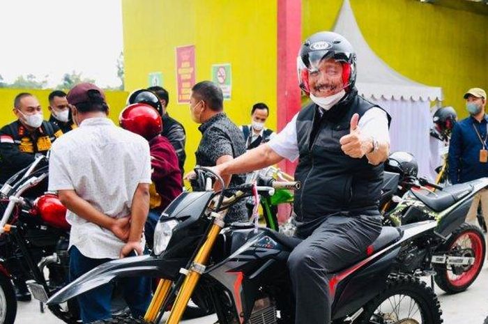 Gridmotor.id - Luhut kewalahan saat mengawal Presiden Jokowi pakai Kawasaki W175 miliknya saat melintasi Danau Toba.