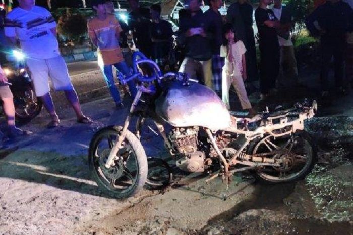 Gridmotor.id - Udah punya niat buruk timbun Pertalite, Suzuki Thunder dengan tangki modifikasi malah terbakar di SPBU.