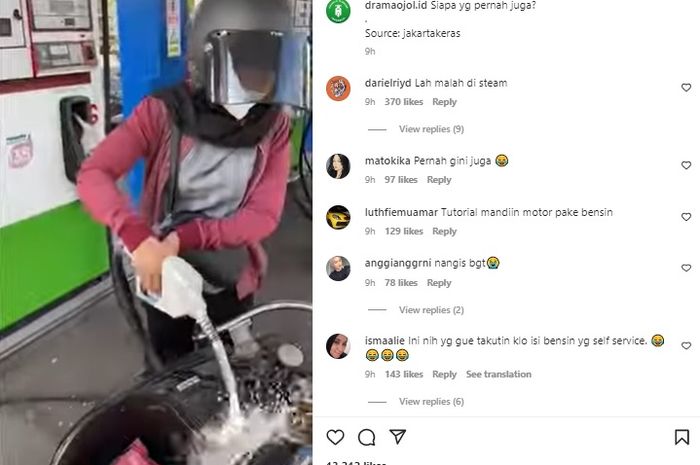Gridmotor.id - Kocak, disaat orang berebut agar mendapat bensin eh cewek ini malah buang-buang bensin.