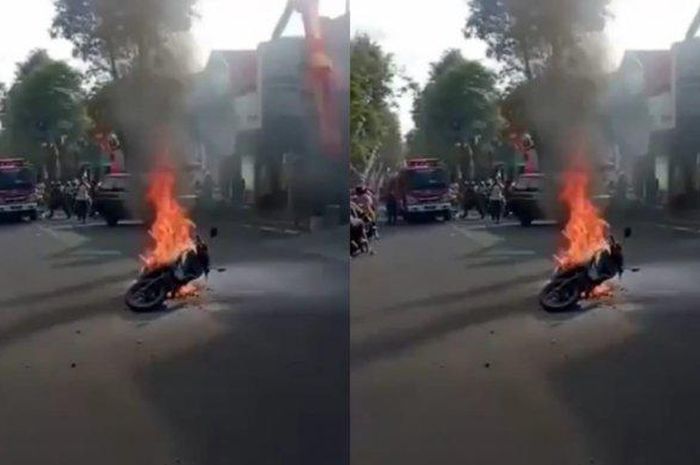 Sepeda motor matik yang dikendarainya tiba-tiba terbakar di Jalan Raya di Jalan MT Haryono, Kelurahan Jogoyudan, Kecamatan Lumajang, Rabu (24/8/2022).