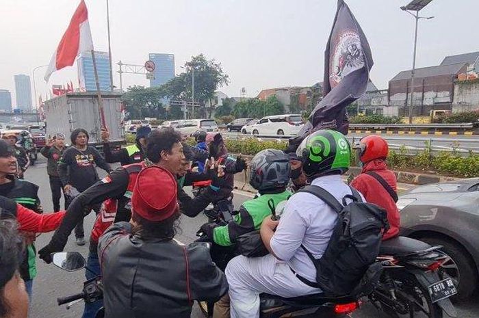 Diketahui ojol yang menyoraki adalah ojol yang selesai melakukan demo.