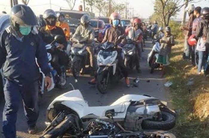 Gridmotor.id - Pemotor Honda CBR dan Honda PCX jadi korban atas pecah bannya sebuah mobil di Surabaya.