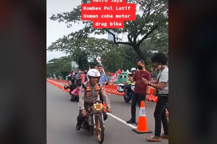 Yakni saat Dirlantas Polda Metro Jaya, Kombes Latif Usman, menjajal motor drag race.