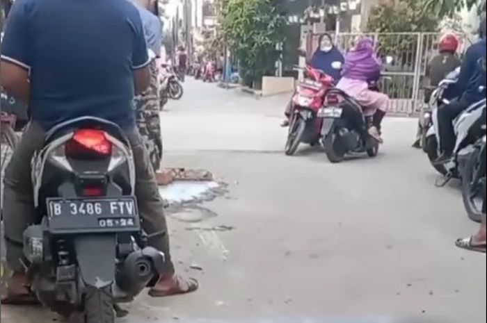 Gridmotor.id - Memang berani tingkah duo emak-emak ini ngobrol diatas motor hingga tutupi jalan.