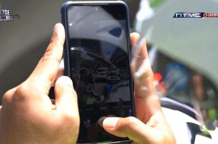 Salah satu perangkat ETLE yang digunakan adalah HP yang dioperasionalkan polisi.