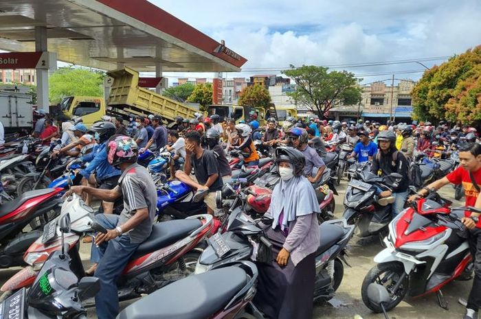 Hal ini lantaran para pemotor harus rela mengantre hingga mengular untuk bisa mendapatkan Pertalite.