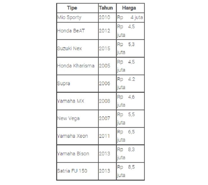Berikut ini daftar motor bekas harga Rp 4- 8 jutaan: