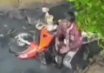 5 Tahun yang lalu - Kecelakaan tunggal ini dialami dua bocah yang naik motor bebek, Seperti alien akibat air dan kotoran got melumuri tubuh dan kepala dua bocah tersebut