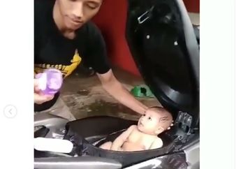 5 Tahun yang lalu - Seorang ayah sedang asik memandikan anaknya di bagasi motor NMAX kesayangannya, hal tersebut menjadi sorotan netizen