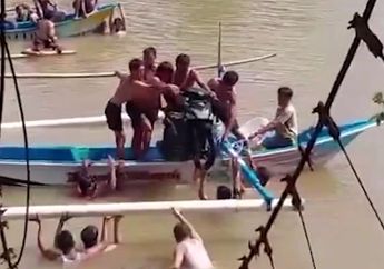 3 Tahun yang lalu - Jembatan gantung putus mengakibatkan rombongan warga perziarah kubur dan delapan motor tenggelam ke sungai.