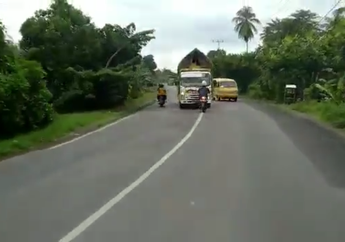 5 Tahun yang lalu - Warga berhamburan, Suzuki Satria FU150 berantakan hajar Yamaha V-Ixion, sebelum adu banteng sukses salip truk.