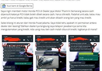 3 Tahun yang lalu - Jika bikers membeli motor langsung cash tapi disuruh pilih metode kredit, segera laporkan oknum sales tersebut.