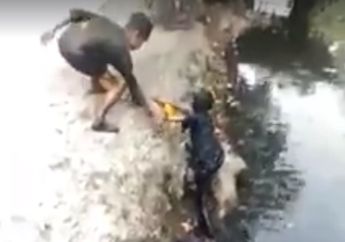 5 Tahun yang lalu - Akibat kecelakaan tersebut kepala, muka dan badannya penuh lumpur yang membuat bocah tersebut jadi seperti alien.