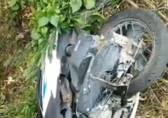 6 Tahun yang lalu - Sementara Honda Vario berkelir putih-biru yang ditungganginya terlihat dalam posisi terbalik di selokan.