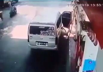 6 Tahun yang lalu - Sementara seorang petugas pom bensin yang panik langsung kabur tanpa sempat mencabut nozle bensin yang masih menempel di tangki mobil.