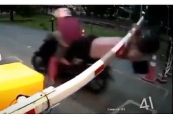 4 Tahun yang lalu - Viral pemotor emak-emak nekat terobos palang pintu parkir hingga akhirnya penumpang yang dibobcengi terjungkal jatuh.