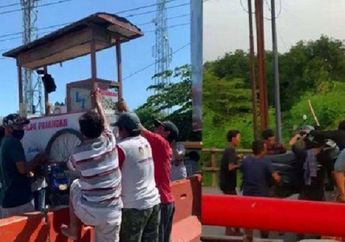 4 Tahun yang lalu - Pemotor dan warga Tegal saling bantu angkat motor dan gerobak cilok melintasi barikade atau beton pembatas PPKM Darurat