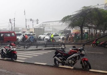 5 Tahun yang lalu - Hujan deras dan angin kencang turun sejak pagi di Cengkareng menyebabkan sebuah papan reklame roboh, menimpa seorang driver ojol.
