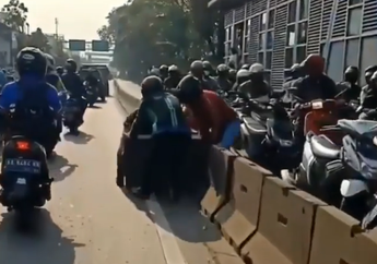 6 Tahun yang lalu - Pemotor-pemotor tersebut terlihat bersama-sama mengangkat pembatas jalan yang terbuat dari beton di jalur Transjakarta.