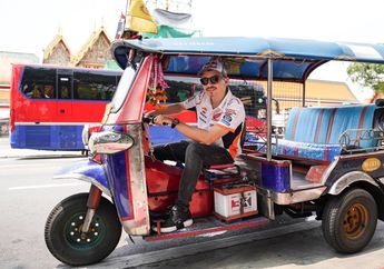 6 Tahun yang lalu - Lorenzo yang mengenakan kaos Repsol Honda cuma berfoto dan enggak mengendarai Tuk-tuk seperti yang dilakukan Marquez tahun 2018 lalu.