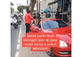 5 Tahun yang lalu - Viral di media sosial, pria ini jualan kopi pakai mobil sport dua pintu, Mercedez Benz SLK 250 saat banyak pemotor lewat.