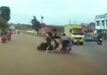5 Tahun yang lalu - Seorang pengendara motor meninggal dunia setelah terjatuh dari motornya saat dilempar bambu oleh seorang warga