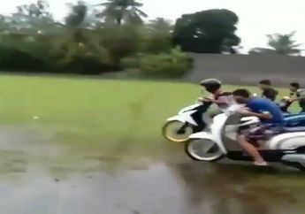 5 Tahun yang lalu - Bikin geleng-geleng kepala, sekelompok remaja lakukan balap motor di lapangan becek sampai jatuh guling-guling, tapi dapat pujian dari netizen.