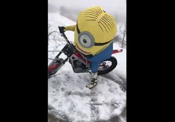 4 Tahun yang lalu - Adik Marc Marquez, Alex Marquez melakukan freestyle di atas salju sambil memakai kostum salah satu tokoh kartun, Minion.