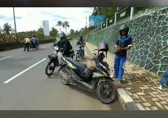 5 Tahun yang lalu - Aksi pengendara motor demi hindari razia polisi berujung brutal, polisi nyaris tersungkur dibuat olehnya.