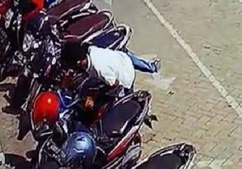 3 Tahun yang lalu - Seorang pejalan kaki terekam aksinya saat mencuri sepeda motor Yamaha Vega R milik perusahaan di Kota Batu, Malang