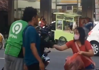 5 Tahun yang lalu - Terlihat seorang wanita yang memakai masker sedang membagikan nasi bungkus kepada para driver ojol (ojek online) dan warga.