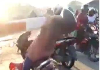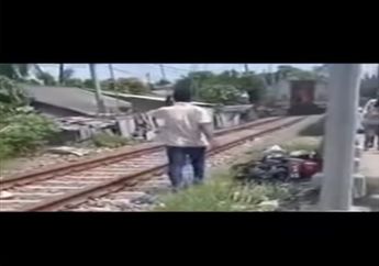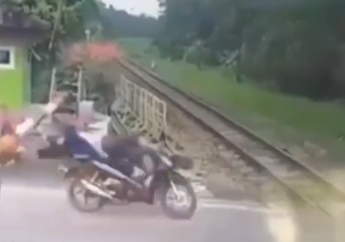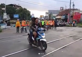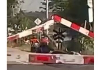 5 Tahun yang lalu - Sebuah video viral di media sosial memperlihatkan pemotor yang menerobos palang pintu perlintasan kereta api.