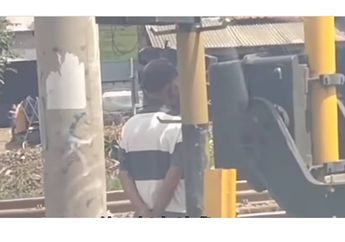 5 Tahun yang lalu - Demi menyelamatkan nyawa pemotor dan pengguna jalan lain, seorang anak kecil memegang tali rafia menjadi palang pintu kereta api.
