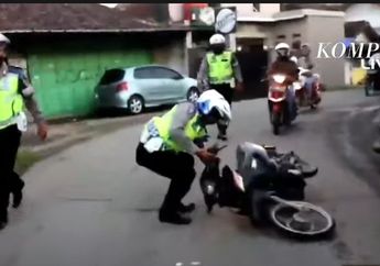 4 Tahun yang lalu - Viral sebuah video yang memperlihatkan pemotor yang melakukan balap liar hingga tabrak petugas razia.