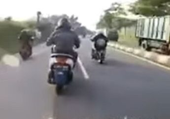 5 Tahun yang lalu - Gara-gara konvoi naik motor sambil geber-geber, beberapa pemotor diciduk polisi, Yamaha Mio sampai jadi korban tendangan petugas.