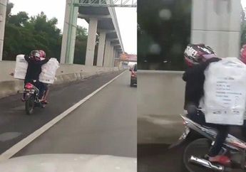 5 Tahun yang lalu - Bekasi digegerkan dengan video pemotor yang ngebut sambil mengangkut barang memasuki jalan tol Jakarta-Cikampek, pada Minggu (25/10/2020) sore.
